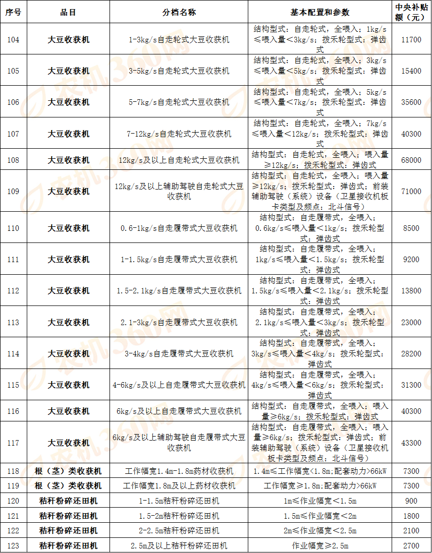 【目录】山西省2024-2026年农机补贴额一览表(第一批)的通告