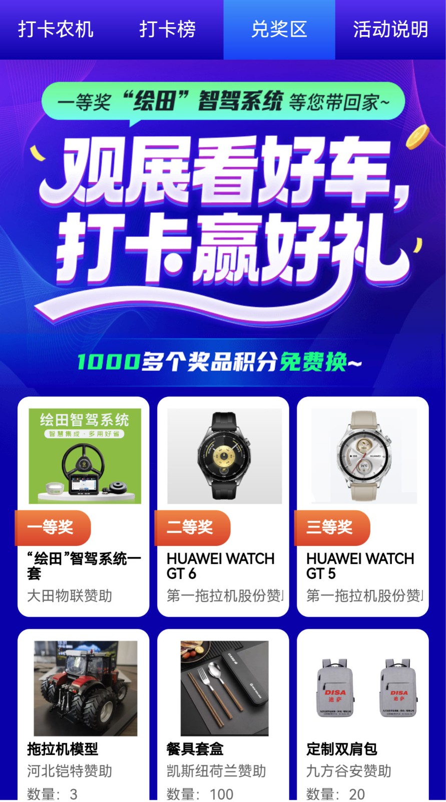 特别提醒:打卡时间为2025年10月26日8点-10月28日10点(系统自动截止等到10:00:00);排名奖领奖时间为10月28日10:30-11:00,请务必关注“我的排名”页面,并至大田农社|农机360网展位(A309)领取这份专属荣耀!