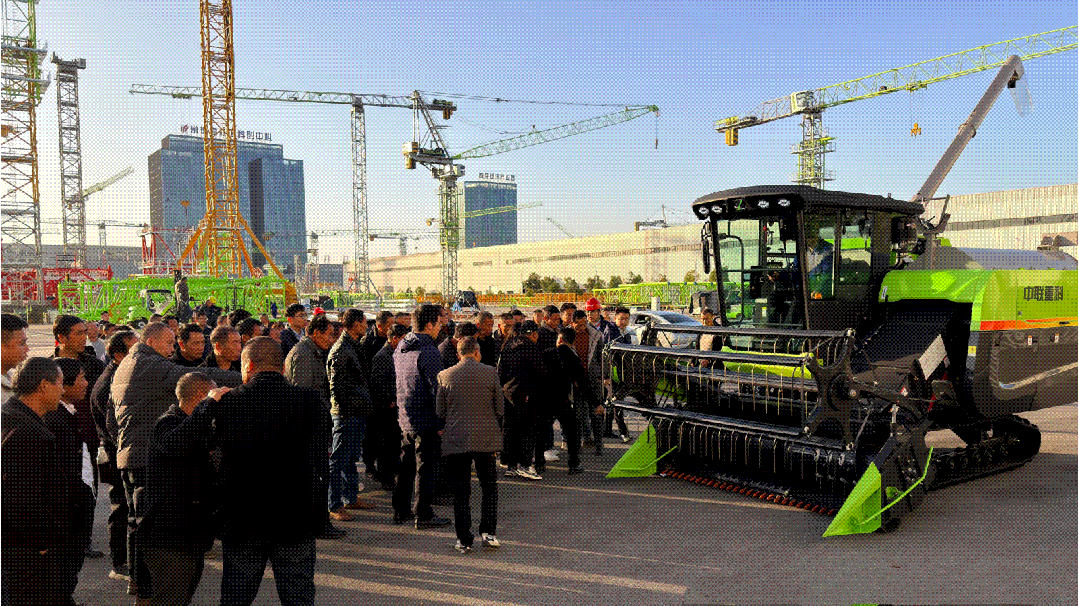 ▲中联PL80-S履带式收割机成为现场关注焦点