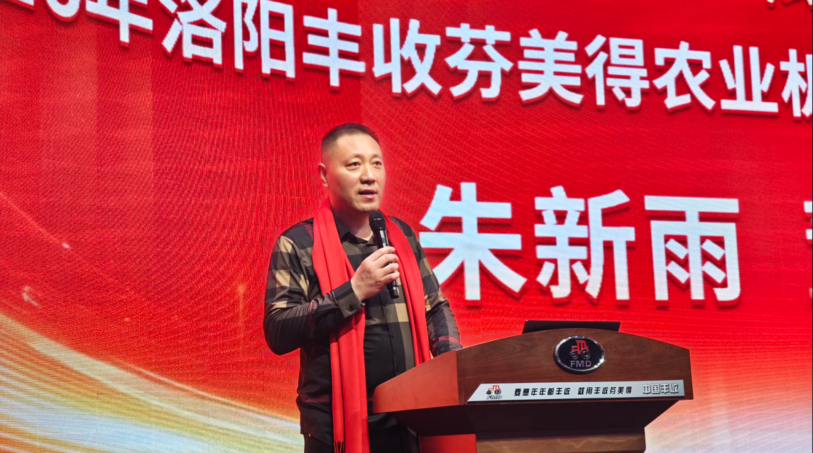 丰收芬美得董事长朱新雨先生在会上致辞,朱董代表丰收芬美得公司及全体员工,向与会嘉宾表示欢迎和感谢。朱董表示,在2025年全国拖拉机市场销量整体下滑的背景下,丰收芬美得产值稳中有升,大马力动力换挡拖拉机销量大幅增长,产品在新疆、东北等核心区域市场需求持续高涨。丰收芬美得已成为动力换挡高端智能领域领先的品牌之一。