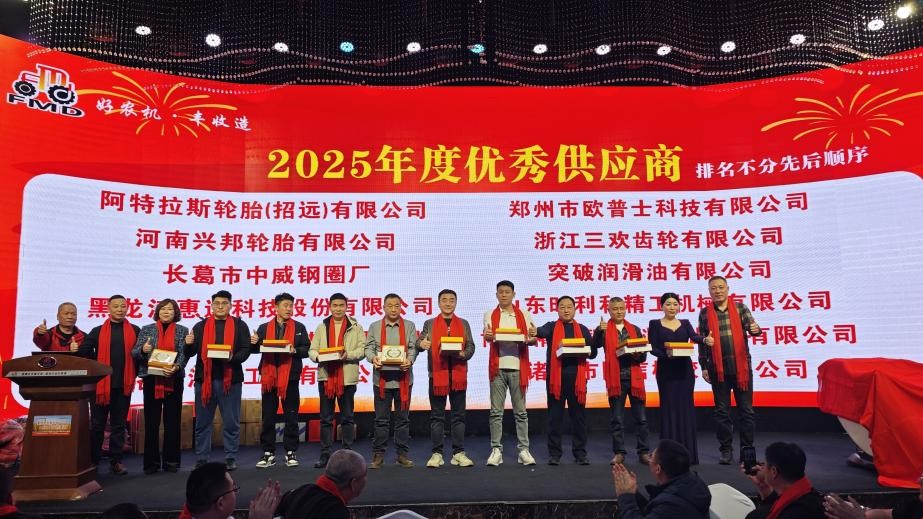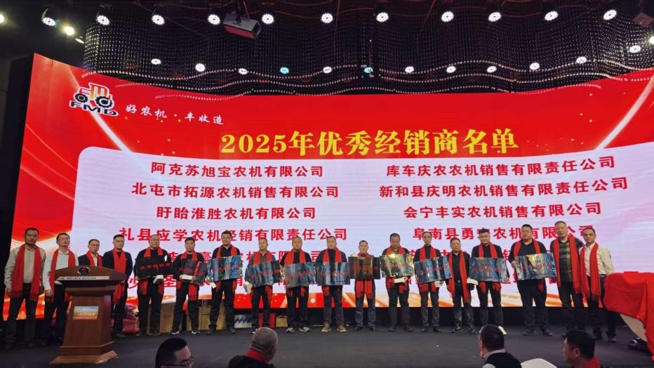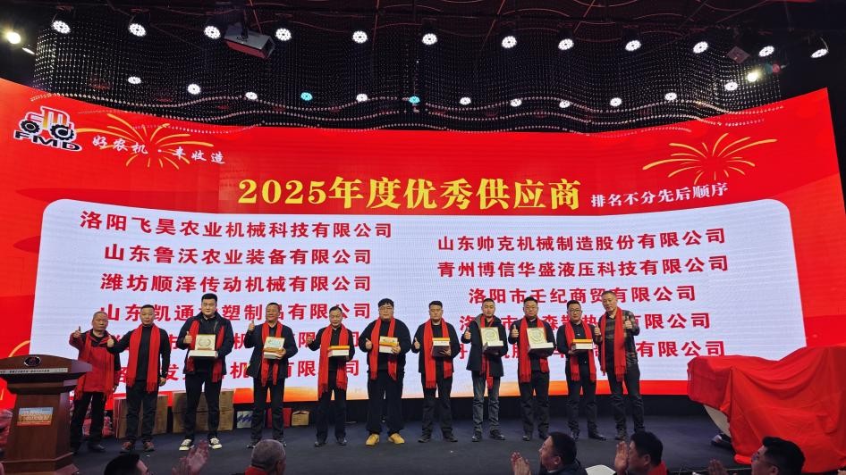 会上还进行了丰收芬美得2025年度优秀供应商代表颁奖、丰收芬美得2025年度优秀经销商代表颁奖。一拖(洛阳)柴油机有限公司、昆明云内动力股份有限公司、安徽全柴动力股份有限公司、浙江海天机械有限公司等优秀供应商,阿克苏旭宝农机有限公司、库车庆农农机销售有限责任公司、北屯市拓源农机销售有限公司等优秀经销商获奖。