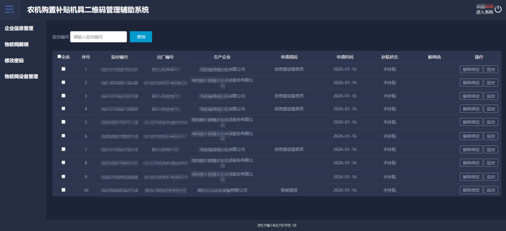 随着农机补贴政策的不断深入,如何保障惠农资金安全被提上了台面。近年来,套补、骗补的现象时有发生,而物联网和大数据的应用让惠农资金实时监管成为可能。令人惊讶的是,今年的中央一号文件不仅提到了监管,更是将“全链条”作为前提,这意味着国家监管将覆盖一台农机出厂、销售、作业、补贴申请、报废的全生命流程,同时也意味着保障农机补贴资金的安全不仅是政府的责任,更是农机生产销售企业、购机用户、技术服务企业共同的义务。在这一背景下,应用大数据、身份赋码、北斗终端等技术手段对农机进行溯源、监管就显得尤为重要。