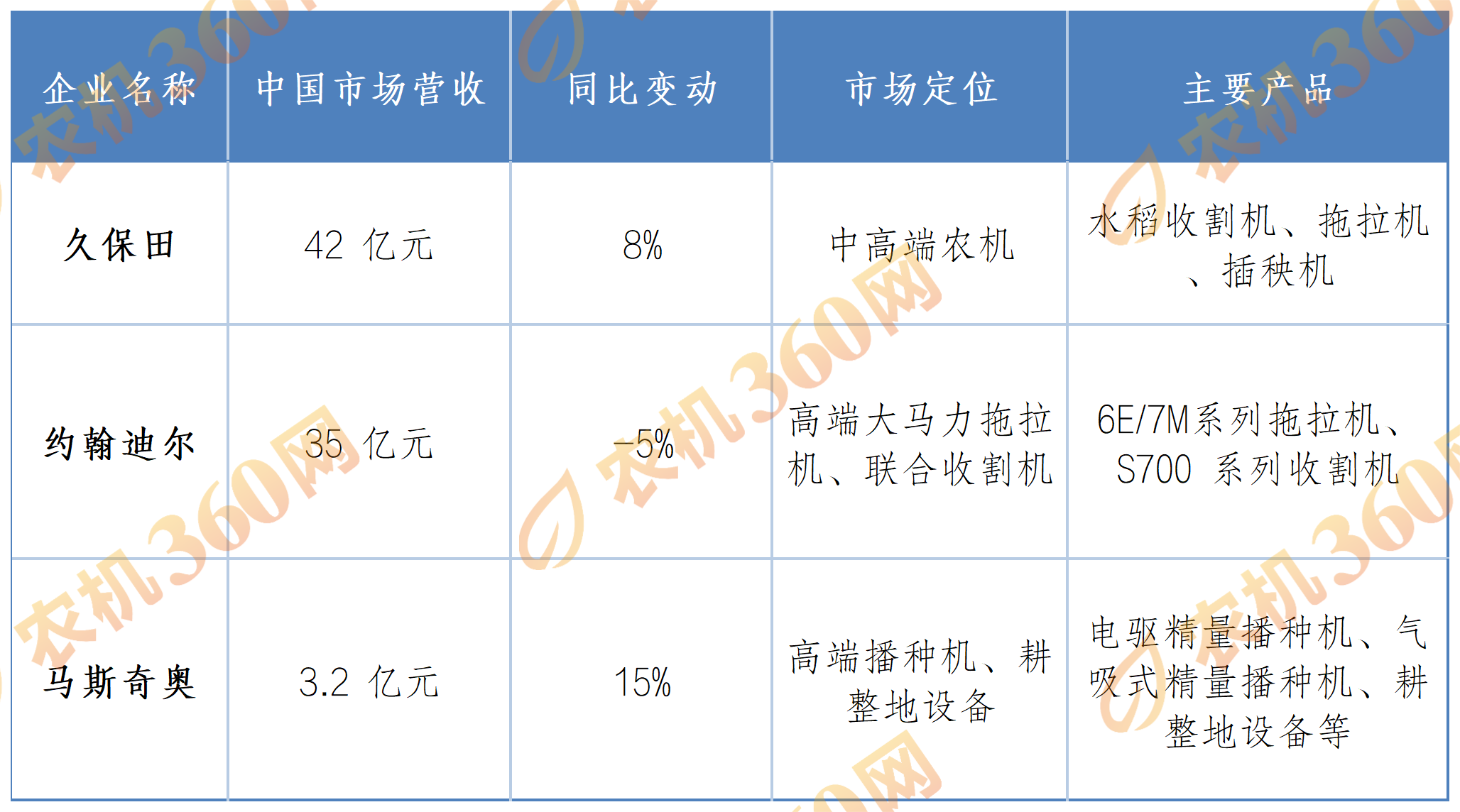 2025年中国市场农机业务营收估算