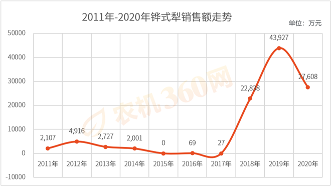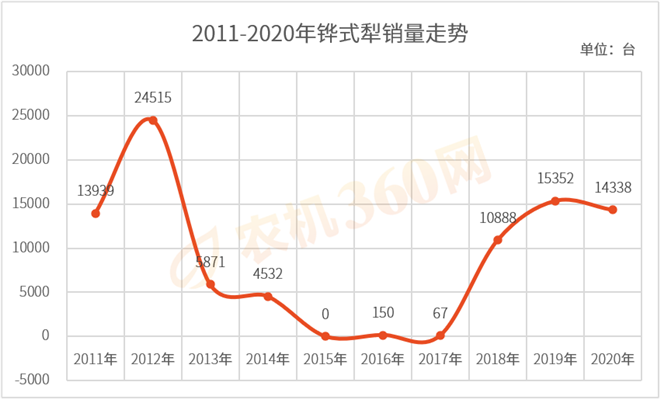 1. 2011-2020年铧式犁补贴销量趋势分析
